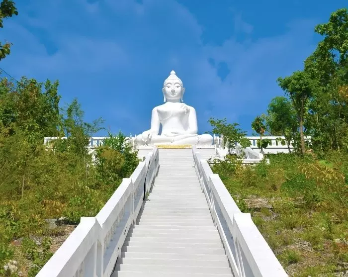 Vanaf de Yun Lai-heuvel ga je verder naar Wat Phra Mae Yen, ook bekend als de Big Buddha, een iconisch monument in Pai. Het indrukwekkende Boeddhabeeld torent majestueus uit boven de Pai-vallei en is van veraf zichtbaar. Om het beeld te bereiken, moet je een trap beklimmen met 350 treden, maar je wordt beloond met een prachtig uitzicht op de vallei en de omliggende bergen.