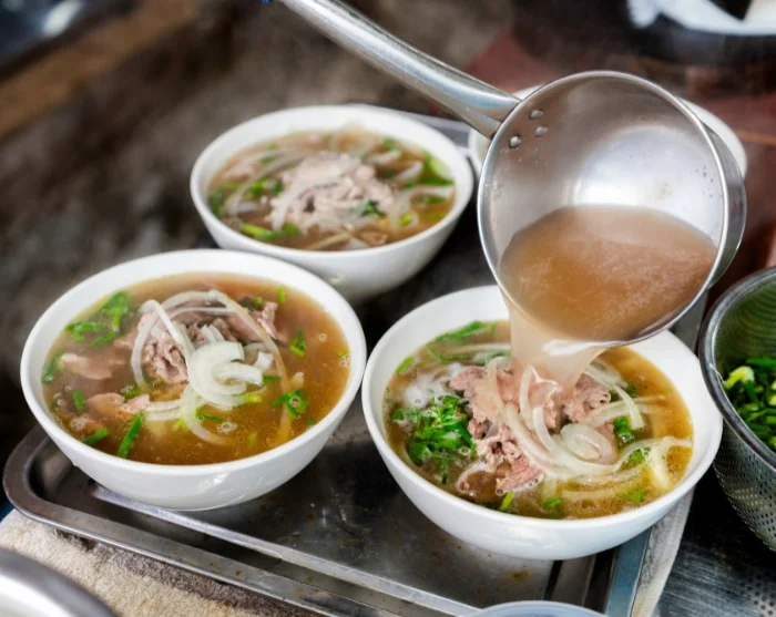 Vanaf hier slentert u door nauwe straatjes en laat u uw smaakpapillen de weg wijzen: proef knapperige nem ran (loempia’s), de wereldberoemde pho (noedelsoep), zoete banh ran (gefrituurde rijstballetjes) en krokante kipdijstukken. Onderweg wandelt u over de Hang Ma-straat voor een inkijkje in de lokale cultuur en het dagelijks leven, waarna u verdergaat naar de sfeervolle bamboehoek—een knus straatplekje vol bamboeambachten en een gezellige drukte van lokale bewoners.