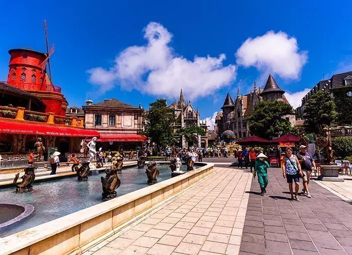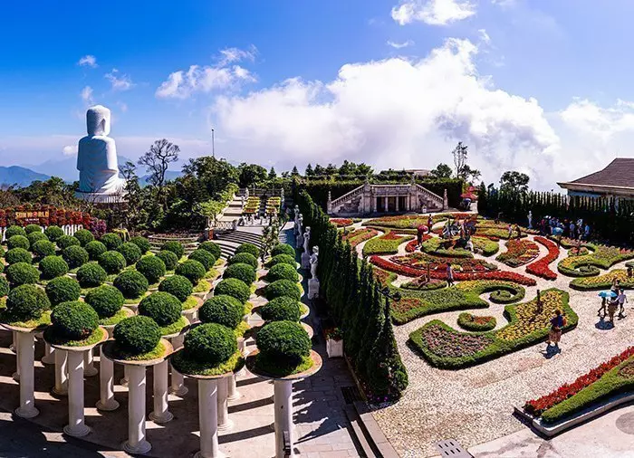 De gids haalt u ‘s ochtends op bij het hotel en na ongeveer 1,5 uur rijden komt u aan bij de kabelbaan, die u in 15 minuten naar een hoogte van 1400 meter brengt. Op de top wacht een indrukwekkend uitzicht, als de gouden brug plotseling tevoorschijn komt met, zwevend op twee grote handen uitgehakt in steen. De brug is voltooid in 2018 en werd snel wereldberoemd vanwege het spectaculaire ontwerp midden in een magisch berggebied, en zo ontworpen dat het lijkt alsof de handen van God een stukje van de aarde optillen, als een voetpad naar de hemel. Het gebied rond het tussenstation van de kabelbaan werd oorspronkelijk aangelegd door de Franse koloniale machthebbers in 1919, o.a voor de opslag van wijn omdat de temperatuur hier meestal 10 graden lager is dan aan de kust. Hier heeft u tijd om rond te wandelen in de prachtige en kleurrijke bloementuin, ook wel ‘Le Jardin d’Amour’ genoemd, de Tuin van de Liefde, waar ook een gigantische witte Boeddha uitkijkt over de bergkam en de weelderige heuvels. Vervolgens gaat u verder met de kabelbaan naar de top van de berg, waar u kasteeltorens ziet. U bevindt zich nu in het hart van het park en een sprookjesachtig landschap met verschillende thema’s ontvouwt zich, zoals het carnaval in Rio, een Frans dorpje, een Japans theehuis en nog veel meer. Hier heeft u vrij toegang tot de meeste attracties voor jong en oud. Na een heerlijke lunch kunt u zelf de attracties uitproberen, gewoon rondwandelen en genieten van de omgeving, souvenirs vinden of even uitrusten in een van de cafés en restaurants of in een rustig hoekje van het park, zoals bijv. bij de Linh Ung-pagode.