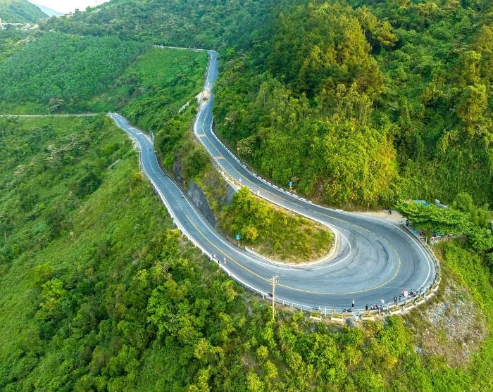 De route volgt op sommige stukken de kustlijn en slingert vervolgens door de Truong Son-bergen, waar u de indrukwekkende Hai Van Pass oversteekt – ook wel bekend als de “Wolkenpas”. Hier geniet u van adembenemende uitzichten: aan de ene kant de weelderig groene bergen, aan de andere kant de oneindige blauwe horizon van de Zuid-Chinese Zee.