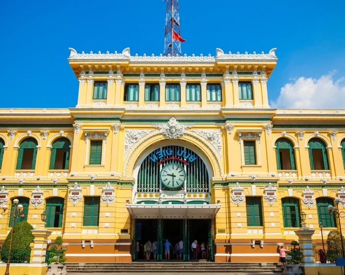 Daarna bezoekt u het Centraal Postkantoor, ontworpen door de wereldberoemde Franse ingenieur Gustave Eiffel. Met zijn sierlijke bogen, elegante ijzerwerk en historische uitstraling staat dit gebouw symbool voor de blijvende Franse invloed in Ho Chi Minhstad.