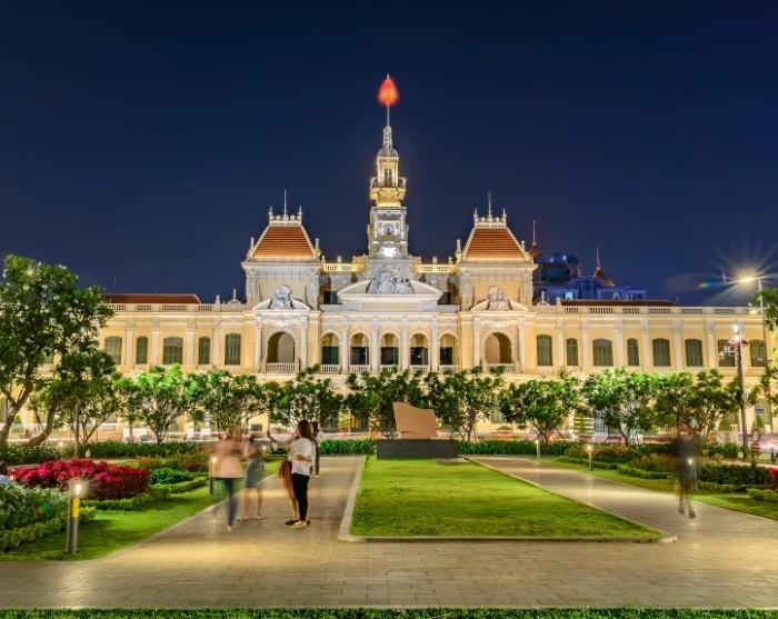 Wanneer de avond valt, is het heerlijk om over de boulevard Nguyen Hue te wandelen, omgeven door bloemen, fonteinen en sfeervolle gebouwen. Hier ervaart u het stadsleven op zijn best: de lokale bevolking verzamelt zich samen met straatartiesten, dansers en jonge gezinnen in een levendige mengelmoes. De sfeer is gemoedelijk én energiek, alles speelt zich af rond het verlichte stadhuis.