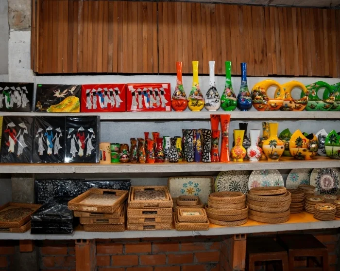 Hierna brengt u een bezoek aan een kleinschalige lokale tentoonstelling van traditionele Vietnamese schilderijen. U kunt hier niet alleen de kleurrijke kunstwerken bewonderen, maar ook zelf de kwast ter hand nemen en de rustgevende concentratie ervaren waar deze kunstvorm om bekendstaat.