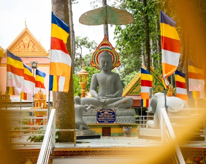 Vandaag krijgt u een uniek inkijkje in het dagelijks leven en de levendige ambachtelijke tradities in de kleine dorpsgemeenschappen van Tra Vinh. Tra Vinh is een rustige en authentieke provincieplaats in het zuiden van de Mekongdelta, gekenmerkt door een grote Khmer-gemeenschap. De kleurrijke pagodes, het ontspannen levensritme en de spirituele sfeer geven het stadje een bijzondere charme die perfect past bij de ervaringen van vandaag.