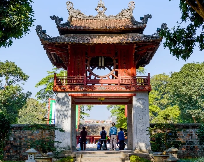 Uw reis gaat verder met een transfer naar de Tempel van de Literatuur, een vredig complex dat in de 11e eeuw werd gesticht door aanhangers van de Chinese filosoof Confucius. Met bijna duizend jaar geschiedenis is deze tempel een zeldzaam en prachtig bewaard voorbeeld van traditionele Vietnamese architectuur, met zuilengalerijen, vijvers en rustgevende tuinen. Hier komen jonge studenten nog steeds om te bidden voor geluk bij hun examens.