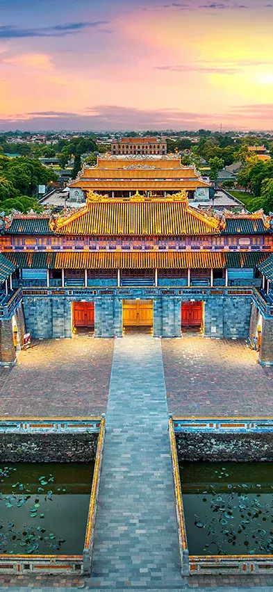 Daarna volgt een mini-cruise door de serene Bai Tu Long baai. Vaar tussen imposante kalkstenen rotsformaties door, verken mysterieuze grotten en geniet vanaf het dek van het betoverende landschap. Vervolgens vliegt u naar de keizerlijke stad Hué, waar u indrukwekkende mausolea, eeuwenoude pagodes en de oude citadel bezoekt.