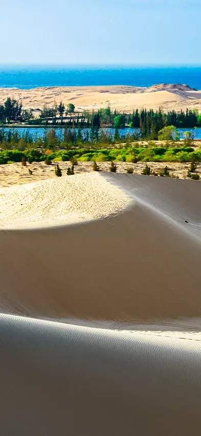 Uw reis eindigt in Mui Ne aan de zuidkust van Vietnam, waar u heerlijk tot rust komt op de uitgestrekte zandstranden. Geniet van de serene sfeer en prachtige zeezichten, proef de overheerlijke Vietnamese keuken of ga op pad langs de zandduinen en sfeervolle vissersdorpjes in de omgeving.
