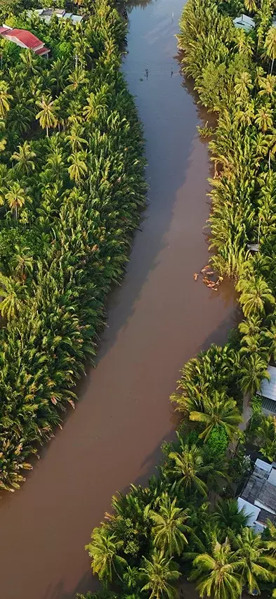 Niet lang nadat u Ho Chi Minhstad heeft verlaten, merkt u dat het landschap begint te veranderen. Onderweg passeert u uitgestrekte groene rijstvelden en slingert u langs kleine riviertjes en kanalen die door het vlakke land kronkelen. U ziet vaak lokale boeren hun gewassen verzorgen terwijl waterbuffels langs de weg grazen, en kleine stalletjes aan de kant van de weg waar u wordt verleid met vers fruit.