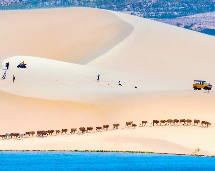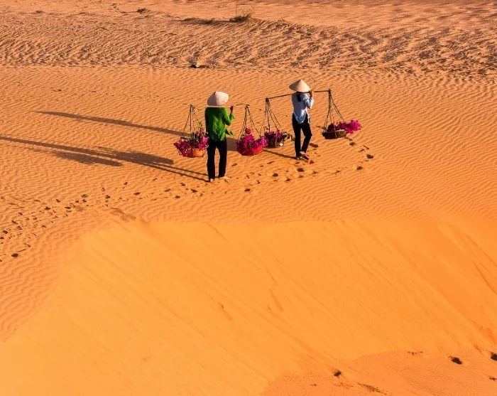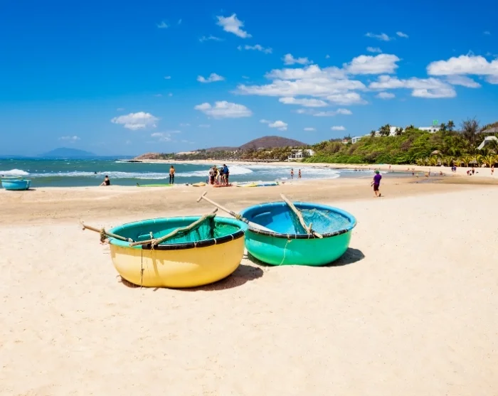Uw reis eindigt in Mui Ne, waar uitgestrekte goudgele stranden, wuivende palmbomen en alle tijd om heerlijk van de zon te genieten op u wachten.