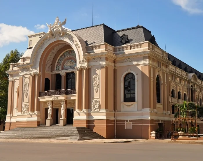 U passeert het Opera House van Saigon, een architectonisch meesterwerk uit 1901 en een levend symbool van het culturele erfgoed van de stad. Ooit diende dit indrukwekkende gebouw als schuilkelder bij bombardementen en bood later onderdak aan de Zuid-Vietnamese volksvertegenwoordiging; het operagebouw kent een bijzonder rijke geschiedenis.