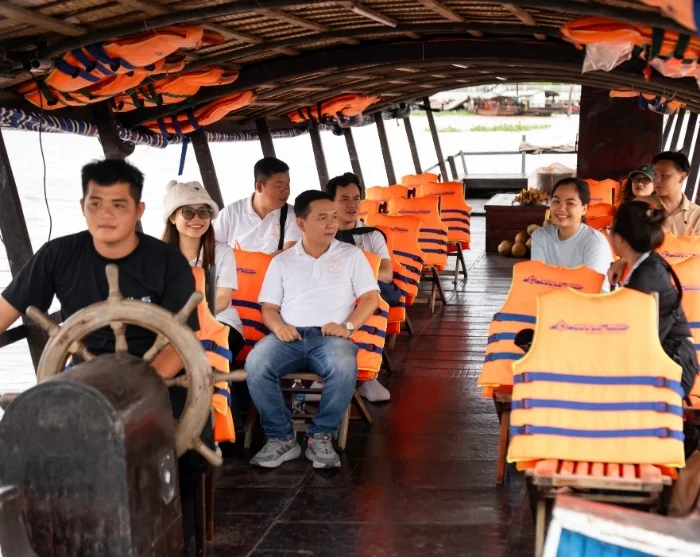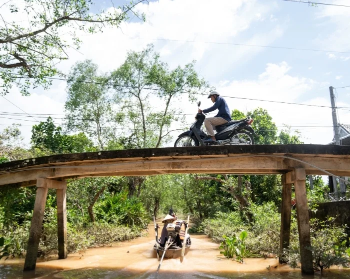 Niet lang nadat u Ho Chi Minhstad heeft verlaten, merkt u dat het landschap begint te veranderen. Onderweg passeert u uitgestrekte groene rijstvelden en slingert u langs kleine riviertjes en kanalen die door het vlakke land kronkelen. U ziet vaak lokale boeren hun gewassen verzorgen terwijl waterbuffels langs de weg grazen, en kleine stalletjes aan de kant van de weg waar u wordt verleid met vers fruit.