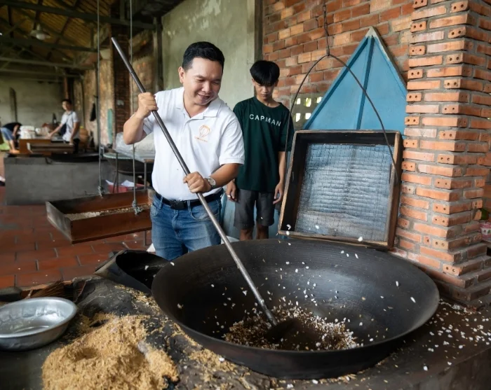 Daarna vaart u per boot terug naar Lak Tented Camp. Hier verkent u de weelderige tuinen van het kamp en maakt u kennis met de rijke koffiecultuur van de M’nong-bevolking. U leert hier ook meer over de traditionele productiemethoden en u kunt genieten van de pure smaak van versgebrande, lokaal verbouwde bonen.