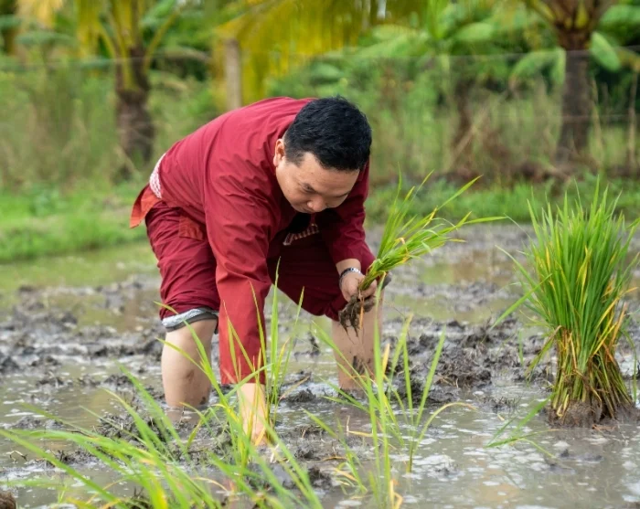 Daarna brengt uw reis u naar ons sociale duurzaamheidsproject in Vinh Long, opgezet door onze lokale partner. U maakt een ontspannen wandeling door het dorp, waarbij uw gids onderweg meer vertelt over het project. U krijgt bovendien de kans om het traditionele plattelandsleven van dichtbij te ervaren. Samen met lokale boeren gaat u aan de slag op de rijstvelden afhankelijk van het seizoen helpt u mee met het planten van jonge stekjes of juist met de oogst. Deze praktische en verrijkende activiteit biedt een uniek inkijkje in het dagelijkse leven op het Vietnamese platteland én in de toewijding waarmee duurzame landbouw wordt bedreven. Uw deelname aan deze reis ondersteunt bovendien families in Vinh Long, want een deel van de reissom gaat direct naar het project. Meer informatie hierover vindt u hier.