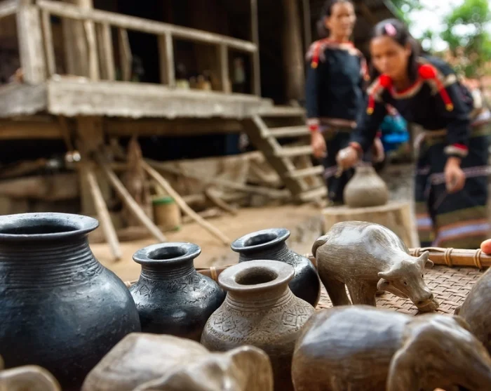 Na het ontbijt fietst u naar het dorp Yang Tao, ongeveer 12 km van Lak Tented Camp verwijderd. De route voert u door frisgroene rijstvelden, waar u onderweg wellicht kuddes buffels en runderen zult zien. In het dorp ontdekt u het verfijnde vakmanschap van het traditionele M’nong-aardewerk en bezoekt u de cacaoplantages, waar u kunt proeven van een bijzondere, gefermenteerde cacaowijn.