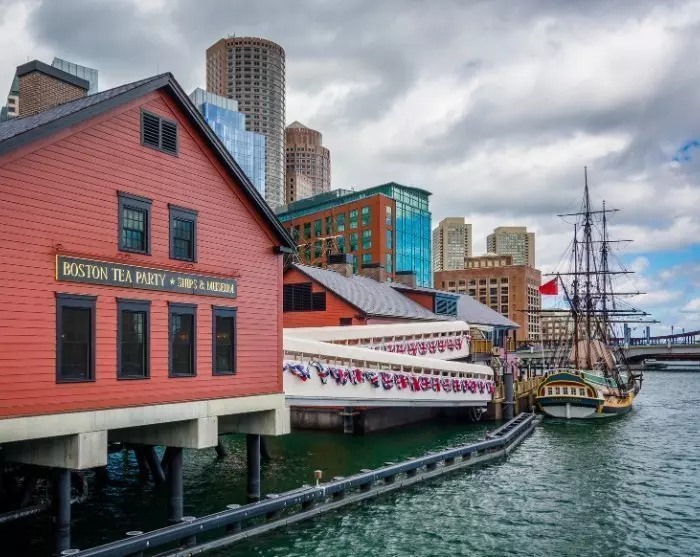 Het museum toont replica’s van 18e-eeuwse zeilschepen en je krijgt de kans om deel te nemen aan de traditie van het overboord gooien van thee, net zoals de kolonisten deden.