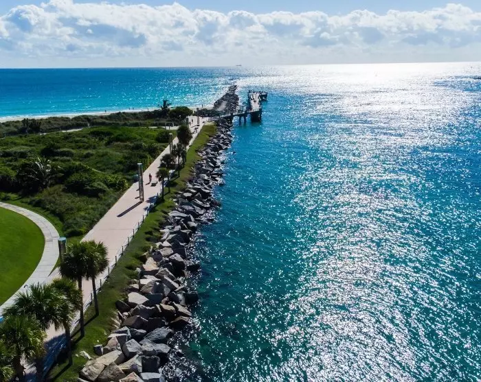 Het wordt sterk aanbevolen om over het bijna 13 kilometer lange verharde fietspad te fietsen, dat zich uitstrekt langs de Miami Beachwalk. Het biedt een prachtig uitzicht op de karakteristieke, pastelkleurige art-decohuizen van de stad aan de ene kant en de zee aan de andere kant. Het is niet ondenkbaar dat je onderweg wordt verleid tot een duik in de zee, of lunch in een van de vele kleine cafés.
