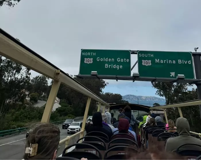 Zorg ervoor dat je een rit over de Golden Gate Bridge maakt, waar de bus stopt bij een beroemd uitkijkpunt. Als je op het bovendek van de open dubbeldekkerbus zit, kun je ernaar uitkijken om de frisse wind van de Stille Oceaan op je gezicht te voelen terwijl je kijkt naar de enorme constructie van de stalen brug boven je hoofd. Vanaf het uitkijkpunt heb je een geweldig uitzicht op de iconische Rode Brug en San Francisco Bay met de daken van de stad en Alcatraz op de achtergrond.