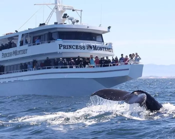 U gaat aan boord van een van de grootste boten in de Monterey-vloot, een boot van 110 voet. Hier kunt u buiten op het dek en ook binnen in de verwarmde lounges zitten. Aan boord kunt u ervoor kiezen om te upgraden naar het bovenste VIP-dek (tegen betaling – op basis van beschikbaarheid). Er zijn toiletten aan boord.