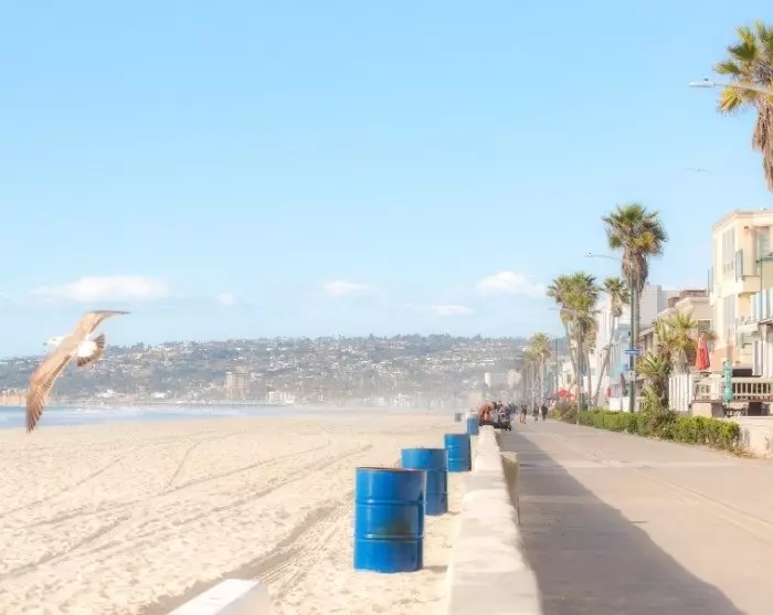 San Diego staat vooral bekend de levendigheid bij de zee en de baai, Mission Bay. Het is geweldig om een fiets te huren en in een rustig tempo de boardwalk langs de zee en de baai te volgen. Aan de baai vindt u kleine cafés en restaurants waar u kunt genieten van een ontspannen moment met uitzicht op het water en de voorbijgangers.