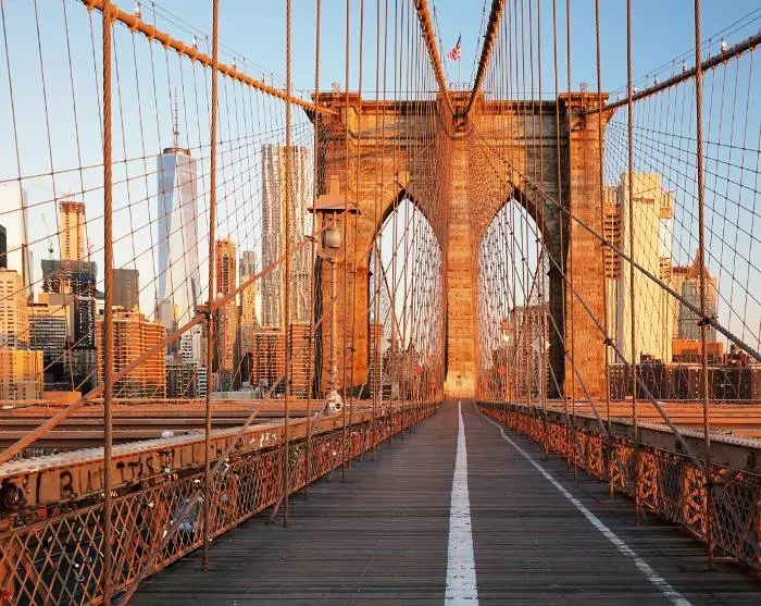 Het is een aanrader om de prachtige route naar Brooklyn te lopen of te fietsen via de beroemde brug der liefde, Brooklyn Bridge, en eventueel terug te keren via de Manhattan Bridge. Aan de Brooklyn-kant kun je genieten van een verfrissing met uitzicht over de stad vanuit de wijk DUMBO, die tussen de twee bruggen ligt.