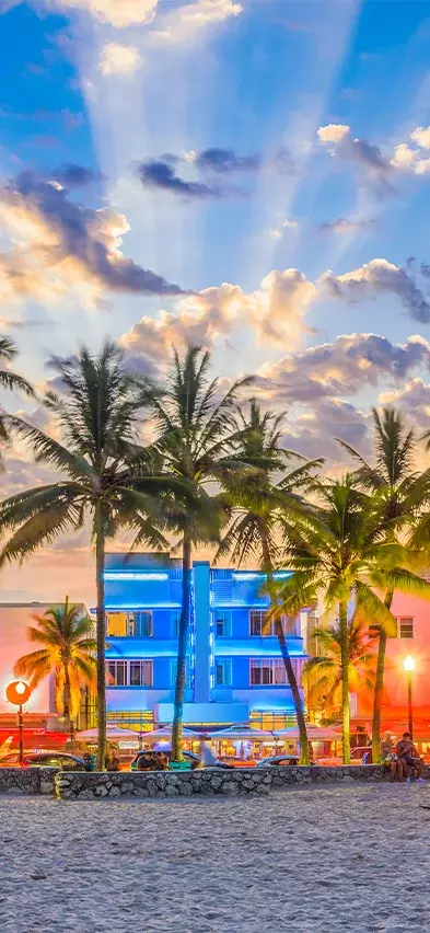Hier in Miami Beach lever je je auto aan het eind van de middag in bij een kantoor in de stad (details vind je op je voucher). Neem vanaf hier een taxi of Uber naar je nabijgelegen hotel.