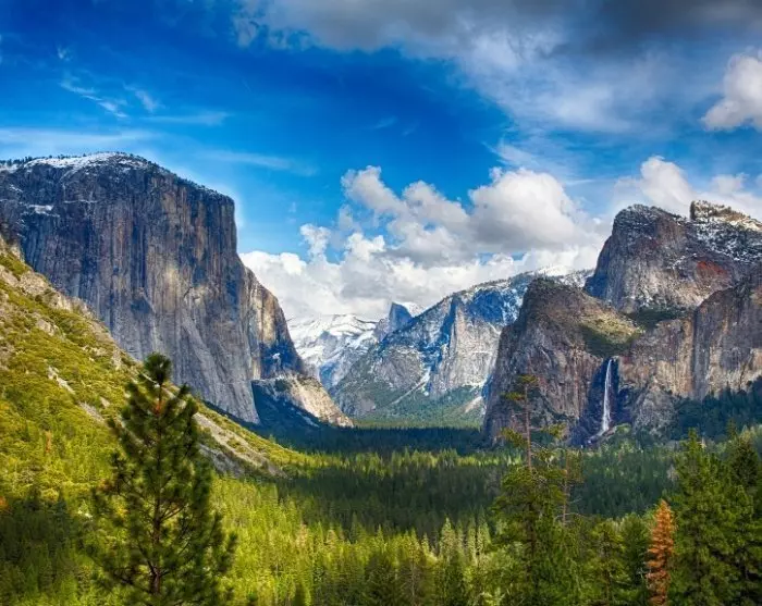 Je moet ook overwegen om de auto te nemen naar een van de mooiste uitkijkpunten in het park, Tunnel View, vanwaar je een prachtig uitzicht hebt op Yosemite Valley, Bridalveil Fall en de beroemde bergen El Capitan en Half Dome, die hierboven zijn genoemd.