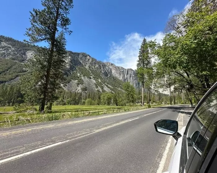 Als je het park nadert (via Arch Rock Entrance), ervaar je hoe het stadsleven geleidelijk wordt vervangen door kale landschappen en uiteindelijk bergen: de Sierra Nevada Mountains, waar Yosemite ligt. Het laatste uur rijden naar Yosemite Valley zelf is onbeschrijflijk mooi met verticale rotswanden, sparrenbomen en de turbulente Merced River, die de hele weg met je meeloopt.