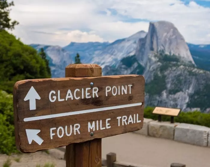 Tijdens de zomermaanden, als de sneeuw gesmolten is, is Glacier Point een van de uitkijkpunten die je niet mag missen. Je kunt er zowel met de auto naartoe rijden of een busrit naar Glacier Point boeken (tegen betaling direct in het park te boeken op basis van wie het eerst komt, het eerst maalt). Als je zin hebt in een wandeling vanaf het uitkijkpunt, kun je ook een busticket boeken naar het uitkijkpunt en via de Four Mile Trail naar beneden wandelen. Vanaf Glacier Point kun je ook een uitzonderlijke zonsondergang meemaken – namelijk het moment waarop de zon een oranje gloed werpt op de grote berg Half Dome.