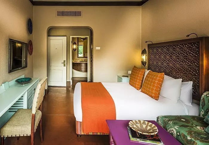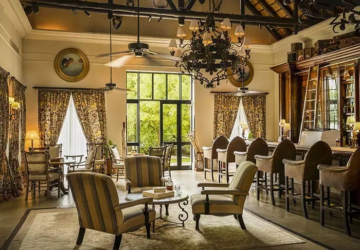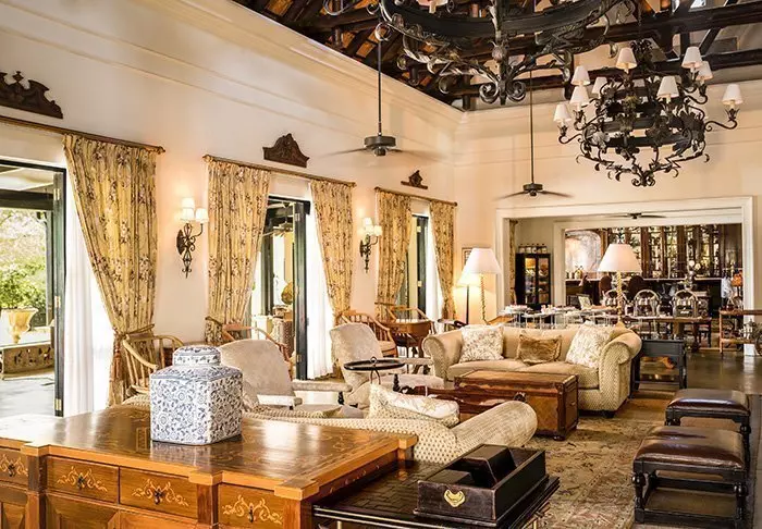 Dit vijfsterrenhotel is in een exclusieve stijl uit de Afrikaanse koloniale tijd gebouwd en ingericht met donkere meubels en dierenvellen. Het is in alle opzichten een vijfsterrenhotel.