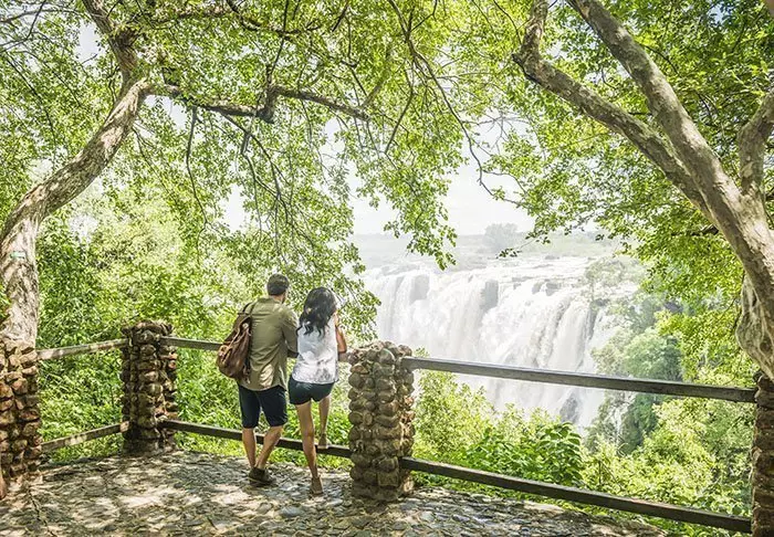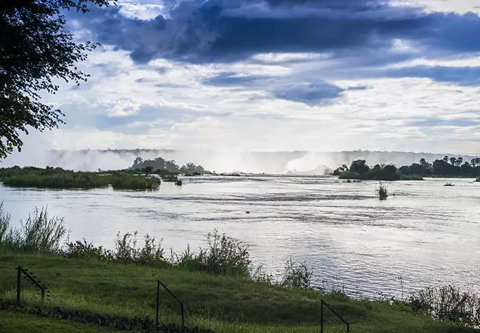 U gaat naar het loungegebied, dat aan de oever van rivier de Zambezi ligt. U gaat in een stoel zitten en heeft uitzicht op het water. Rechts ziet u de rivier landinwaarts tot aan de horizon stromen. Links… U pakt uw camera. Links van u, op slechts enkele honderden meters van u vandaan, schijnt de allermooiste regenboog die u ooit heeft gezien. Hij spant van de ene oever naar de andere en omlijst perfect de honderden meters hoge watermassa van de machtige Victoriawatervallen. U heeft overigens ook vanuit het hotel uitzicht op de watervallen.