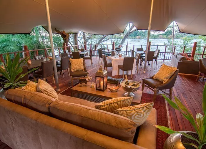 Naast de voederplaats van de olifanten, waar een fenomenaal uitzicht op de rivier de Zambezi is, is een café gebouwd. Hier wordt de lunch geserveerd (bij de prijs inbegrepen). En die mag er wezen! Bij het bereiden van het eten worden producten uit het omliggende gebied gekozen: fruit, kruiden, noten, wilde bloemen enz. Uiteraard bepaalt het seizoen de keuze. Een aantal ingrediënten is ook het lievelingseten van de olifanten. De koks hier kunnen echt toveren en het eten smaakt hemels! Het menu bestaat uit drie gerechten, inclusief wijn. Dit alles is bij de prijs inbegrepen.