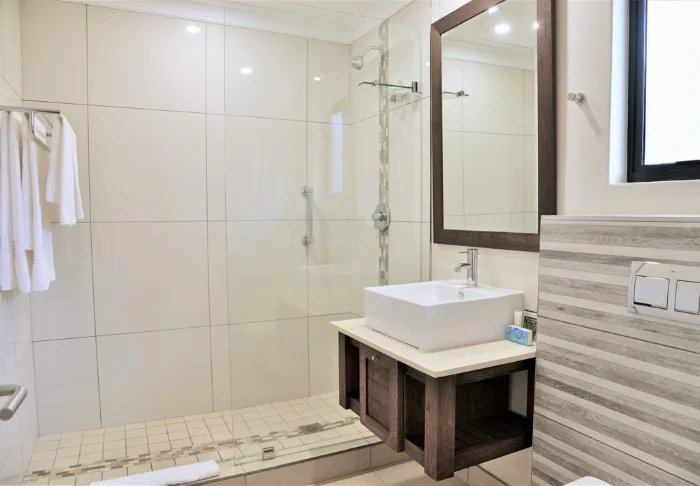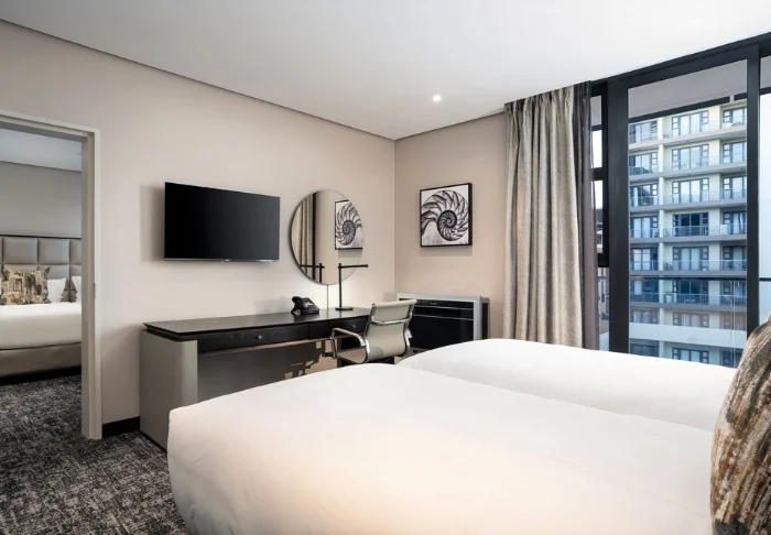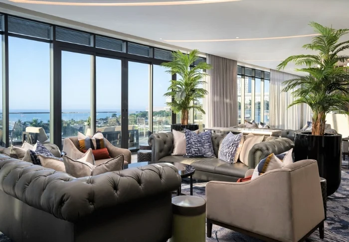 Het hotel heeft 173 kamers, alle hebben grote ramen van vloer tot plafond en uitzicht op de Indische Oceaan. De kamers zijn modern ingericht in lichte en vriendelijke kleuren. De badkamer is geïntegreerd in de hotelkamer. Alle kamers zijn voorzien van gratis wifi, koelkast, kluisje en thee- en koffiefaciliteiten.