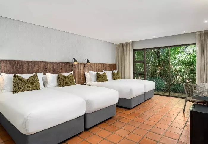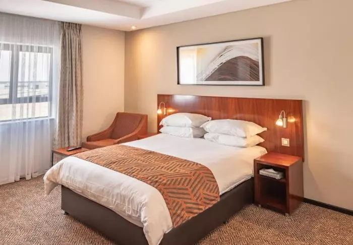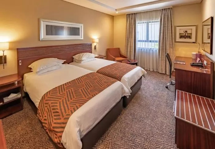 Er zijn 150 kamers verdeeld over 3 etages. Het hotel is modern ingericht met warme kleuren en een vleugje Afrikaanse charme. De kamers zijn voorzien van airconditioning, flatscreen-tv, kluisje, strijkijzer en -plank, thee- en koffiefaciliteiten en badkamer met toiletartikelen en föhn.