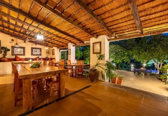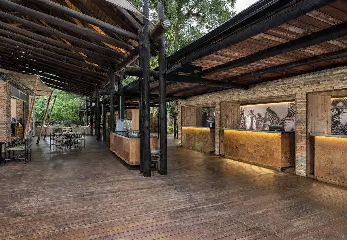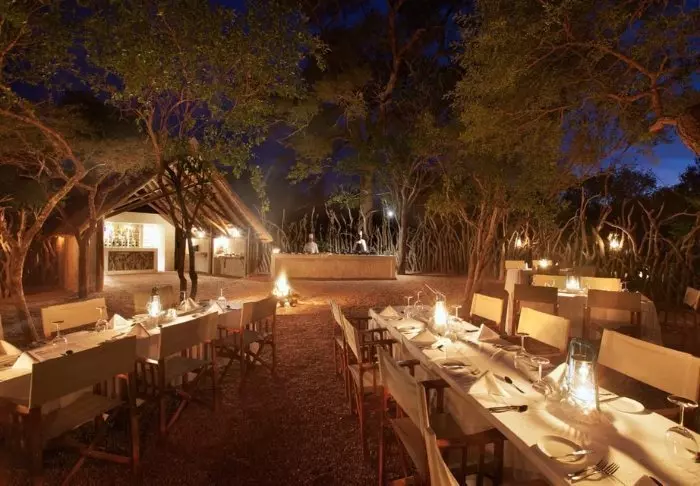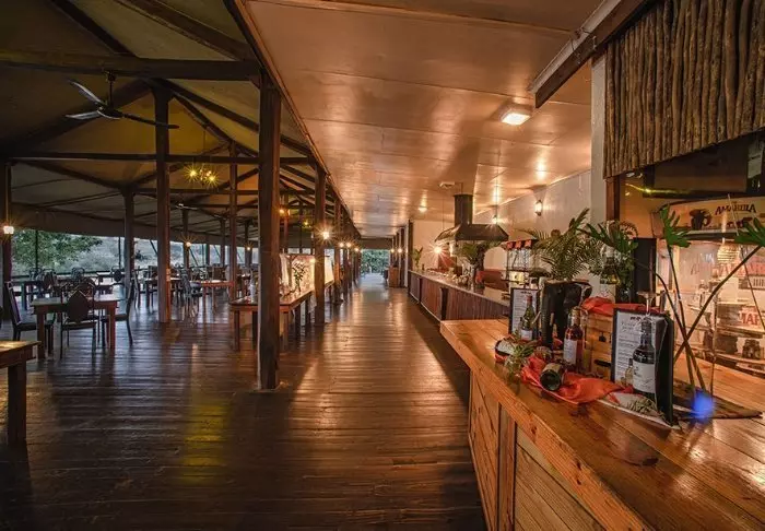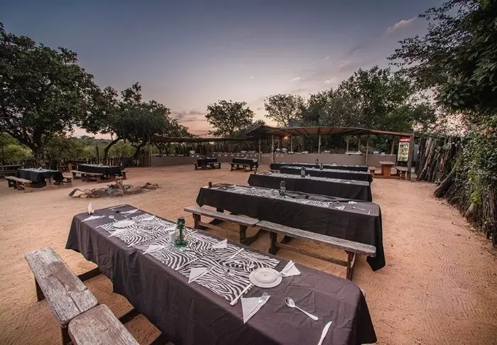 Het kamp heeft een heerlijk restaurant, een gezellige bar, een uitstekende kleine winkel en verschillende ‘boma’s’, de typische Zuid-Afrikaanse kampvuurplaatsen waar het eten onder de open hemel wordt geserveerd.