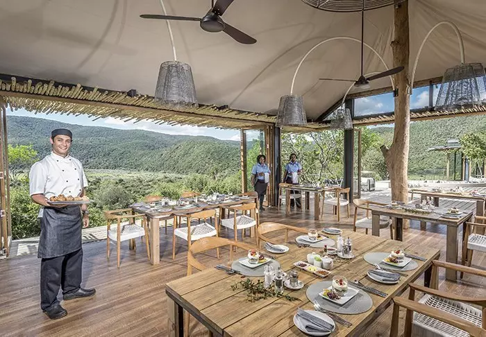Deze 4-sterren Main Lodge ligt op een berg in een omheind gebied in het Kariega Game Reserve. Door de ligging op de berg hebben alle chalets een uniek uitzicht over het reservaat en kan men direct vanaf het balkon dieren zien.