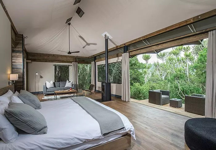De tenten zijn zowel modern als klassiek ingericht. Er is voor de kleuren bruin en beige gekozen, dus de ‘klassieke’ safarikleuren. De constructie van de tenten bestaat uit steen, glas, hout en canvas. Dit geeft de lodge zowel een moderne als klassieke uitstraling.