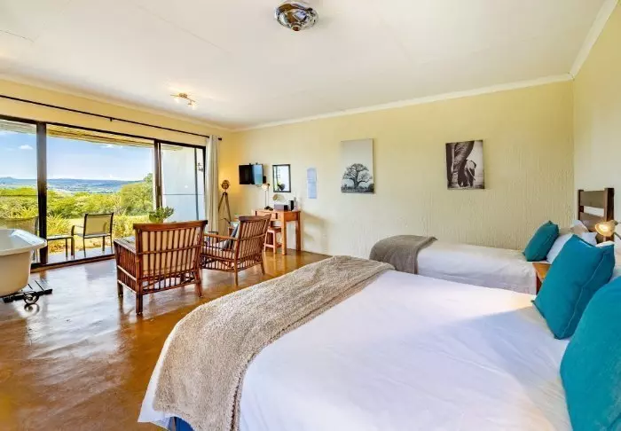 Het door de lodge geboden panorama over de savanne en de Krokodillen-rivier maakt dat u zich één met de natuur en de wilde dieren voelt. De lodge heeft 4 sterren en biedt volop mogelijkheid voor ontspanning, bijvoorbeeld door het genieten van de spa, massage, zwemmen en het fantastische uitzicht.