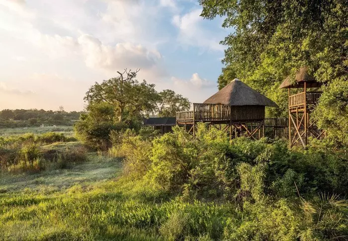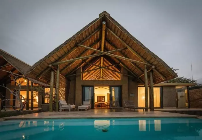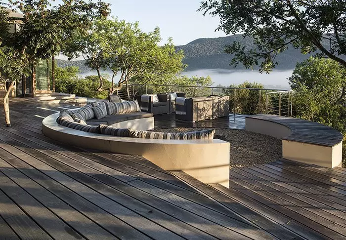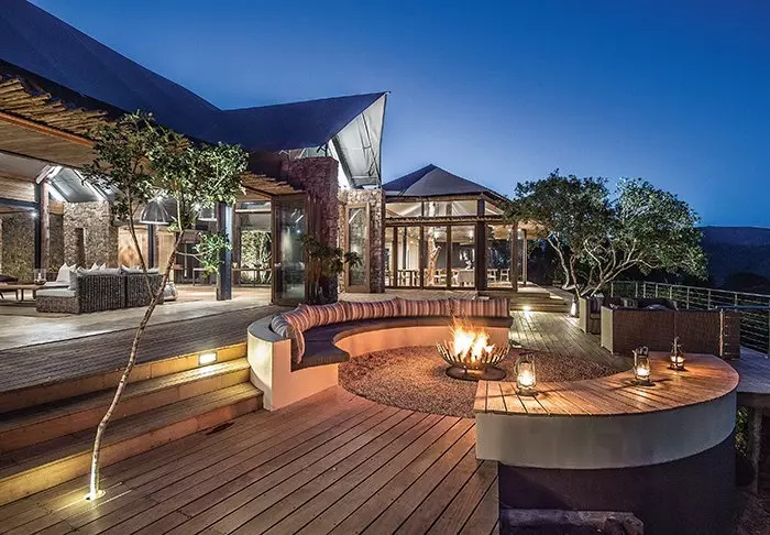 De lodge is op een helling in een afgelegen deel van het wildreservaat gebouwd, wat voor rust en een ongehinderd uitzicht op de natuur zorgt.