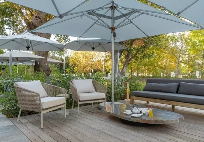 Het hele hotel is stijlvol ingericht in zachte kleuren die passen bij de omringende natuur en bijdragen aan het gevoel dat dit een vredige, oase-achtige plek is. Hier vindt u 44 ruime en moderne kamers voorzien van thee-/koffiefaciliteiten (Nespresso-apparaten), airconditioning, satelliet-tv, kluisje, minikoelkastje, föhn, L’Occitane toiletartikelen en USB-aansluitingen. Alle kamers hebben een gezellig eigen terras of balkon met uitzicht op de tuin en een van de zwembaden.