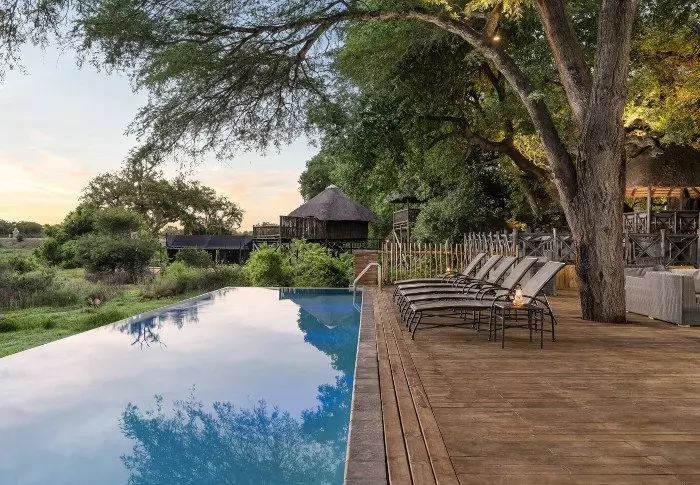 Vanuit de gezellige lounge bij een van de zwembaden hebt u uitzicht op het Krugerpark aan de andere kant van de Sabierivier. Heel vroeg in de ochtend of laat op de dag is het licht fantastisch. Als u geluk hebt, komt er misschien wel een kudde olifanten in de rivier baden.