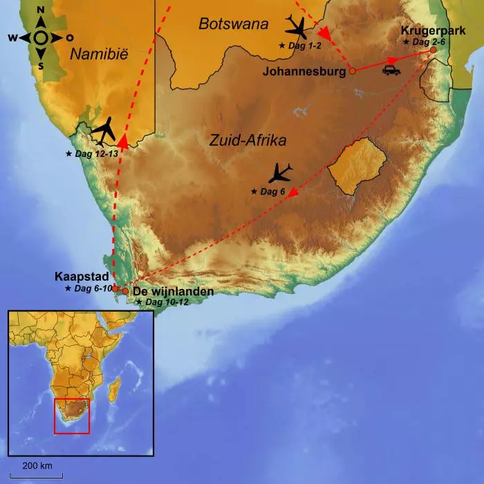 De reis begint met een waar safari-avontuur. U verblijft in een prachtige 3* camp met direct uitzicht op het Krugerpark, en vanuit hier vertrekt u op safari in het nationaal park om the Big Five te zien en alle andere interessante safaridieren. Er is ook U tijd om gewoon te ontspannen, van het uitzicht te genieten of op een excursie te gaan langs de prachtige Panoramaroute van Zuid-Afrika.