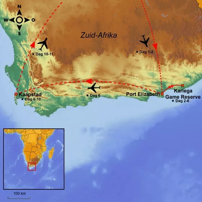Malariapillen zijn niet nodig voor deze “all in” safari in de Eastern Cape, bushwalk en bezoek aan een lokaal dorpje. Sluit de reis af met een bezoek aan het prachtige Kaapstad.